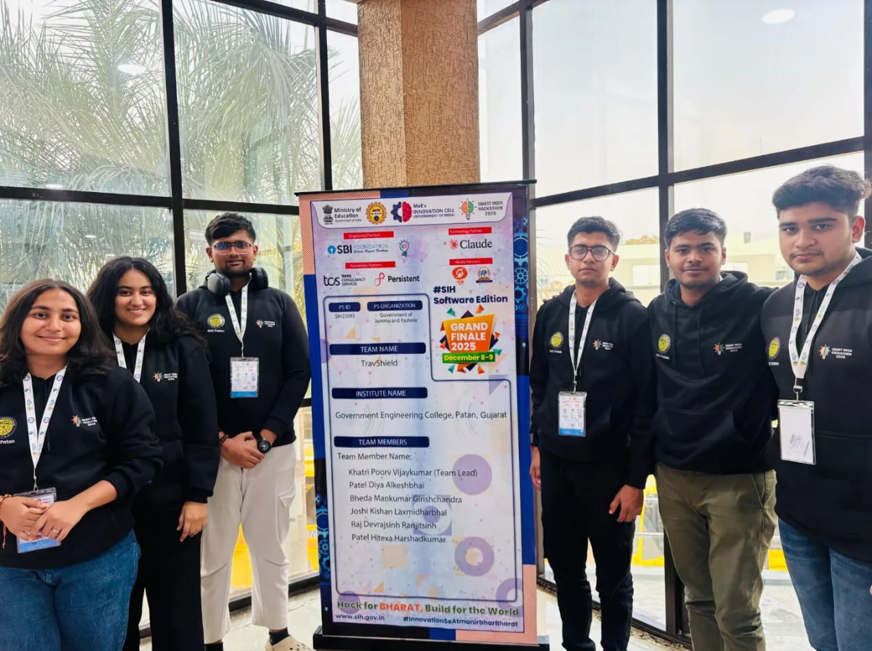 We proudly celebrate Team TravShield from Government Engineering College, Patan, for reaching the Grand Finale of the Smart India Hackathon 2025. Competing on December 8-9, the team demonstrated exceptional skill in solving real-world issues for the Government of J&K. A huge congratulations to Team Lead Khatri Poorv and all team members for this national-level achievement!
